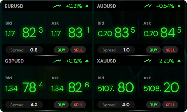 Trade with tight spreads across forex pairs, metals and commodities designed to support different trading strategies.